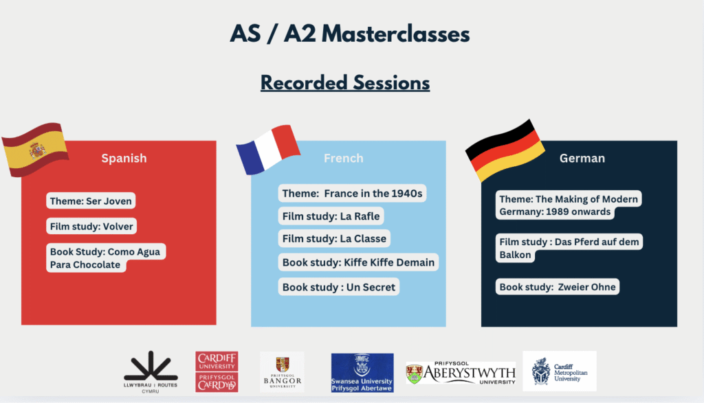 We are pleased to share a collection of AS and A2 Masterclass recordings designed for AS and A level teachers in Wales. These sessions were delivered by lecturers from Cardiff University, Swansea University, Aberystwyth University, and Bangor University.