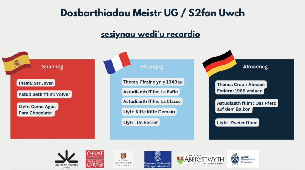 Mae’n bleser gennym rannu casgliad o recordiadau Dosbarth Meistr UG a Safon Uwch sydd wedi’u dylunio ar gyfer athrawon UG a Safon Uwch yng Nghymru. Traddodwyd y sesiynau hyn gan ddarlithwyr o Brifysgol Caerdydd, Prifysgol Abertawe, Prifysgol Aberystwyth a Phrifysgol Bangor.